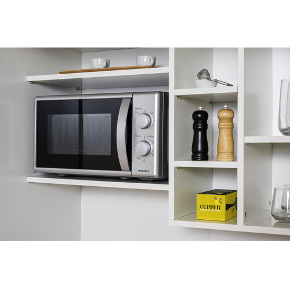 Die Respekta Schrankküche ist ideal ausgestattet mit einer Ab- und Überlaufgarnitur, einer Mikrowelle, einem Kochfeld, einem Kühlschrank sowie einer Spüle. Damit wird das Kochen und Zubereiten von Speisen zum Kinderspiel, selbst in kleinen Küchen.