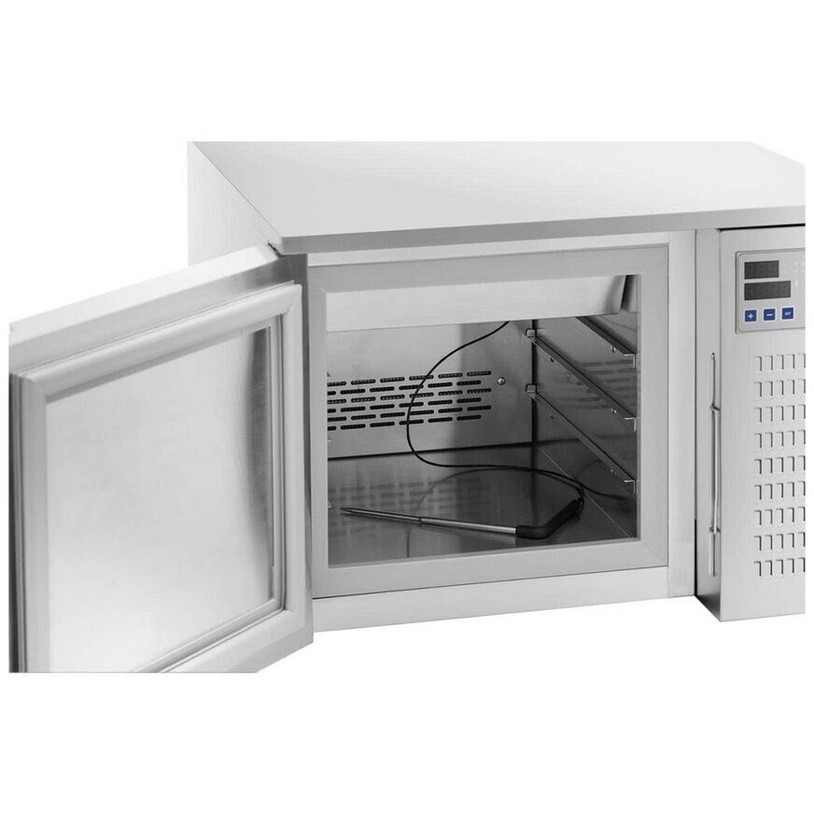Entdecken Sie den Royal Catering RCGK-BC30, den perfekten Schockfroster für professionelle Küchen! Mit seinem eleganten silbernen Design fügt sich der freistehende Schockfroster nahtlos in jede Umgebung ein.