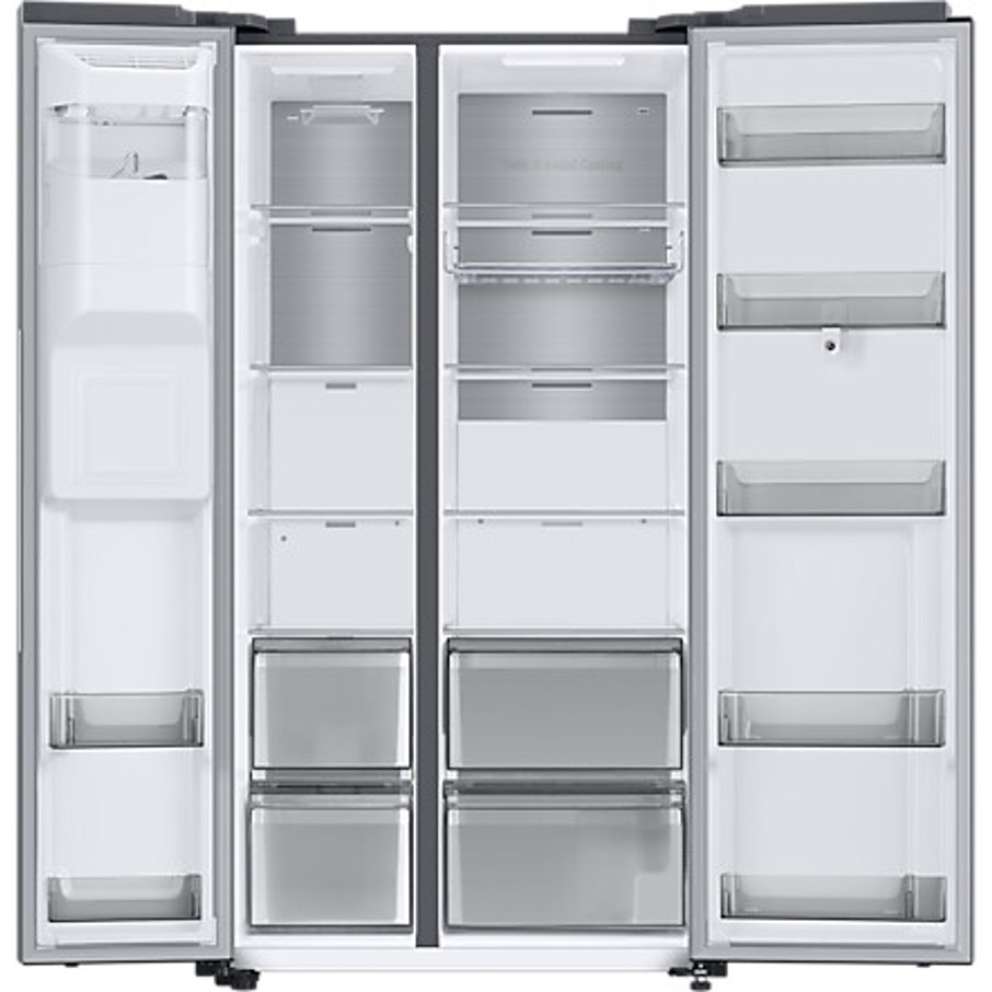 Entdecken Sie den Samsung RS6HA8891SL/EG - ein freistehender Side-by-Side-Kühlschrank, der nicht nur durch sein elegantes silbernes Design besticht, sondern auch durch seine technischen Raffinessen.