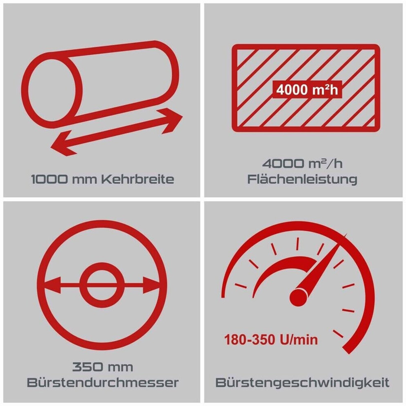 Die 100 cm Arbeitsbreite sorgt dafür, dass Sie große Flächen schnell und effektiv reinigen können. Der leistungsstarke 4-Takt-Motor gewährleistet dabei eine zuverlässige Energieversorgung für den Einsatz unter verschiedenen Bedingungen.