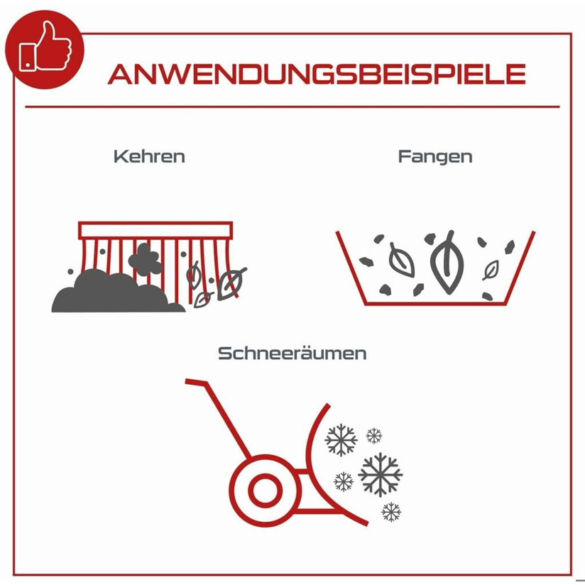 Besonders hervorzuheben ist die höhenverstellbare Kehrbürste, die eine Anpassung an unterschiedliche Oberflächen ermöglicht. Im Lieferumfang sind zudem ein Schneeschild sowie ein Auffangbehälter enthalten, die Ihnen zusätzliche Flexibilität bieten.