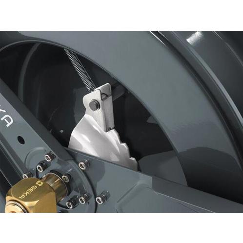 Die integrierte GEKA® plus Winkeldreharmatur aus robustem Messing ermöglicht eine flexible Verwendung, während die Edelstahlrollen für die Schlauchführung einen reibungslosen Betrieb garantieren. Das gepolsterte Schutzsystem und der Gummi-Schlauchstopper sorgen darüber hinaus für eine erhöhte Lebensdauer des Produkts.