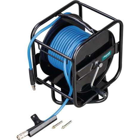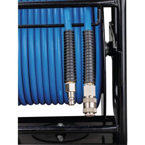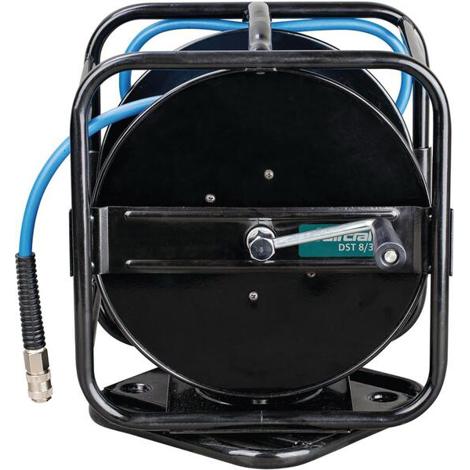 Entdecken Sie die neue Druckluft-Schlauchtrommel DST 8/31, die Ihnen mit einem hochflexiblen Polyurethanschlauch und Gewebeeinlage eine überlegene Leistung bietet. Die robuste Konstruktion mit einem Betriebsdruck von bis zu 8 bar garantiert eine zuverlässige Nutzung bei verschiedenen Anwendungen. Dank des cleveren Knickschutzes bleiben die Schläuche immer in der richtigen Position, während der Standfuß eine 360° Drehung ermöglicht, damit Sie mühelos arbeiten können.