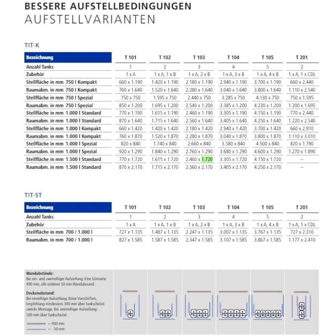 Die kompakten Abmessungen von 770 mm Breite, 1.700 mm Höhe und 1.720 mm Tiefe ermöglichen eine flexible Installation, während das hochwertige Material aus Polyethylen sicherstellt, dass Ihr Heizöl bestmöglich geschützt ist.
