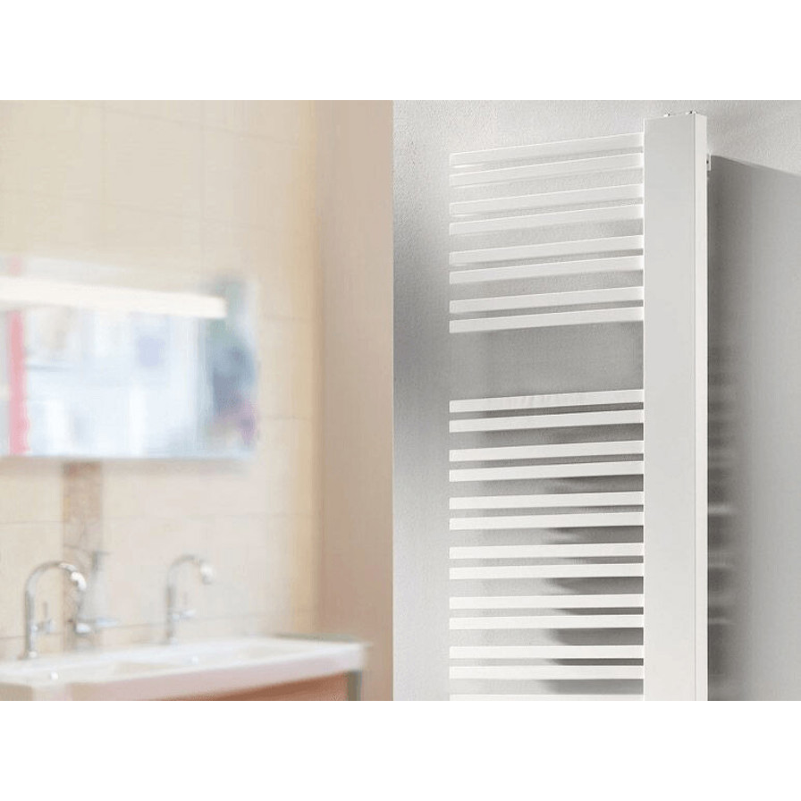 Der Heizkörper ist aus Stahl gefertigt und überzeugt durch seine pulverbeschichtete Oberfläche, die nicht nur pflegeleicht, sondern auch lösungsmittelfrei ist. Dank der vertikalen Ausrichtung passt er ideal in jedes Badezimmer und fügt sich harmonisch in Ihr Wohnambiente ein.