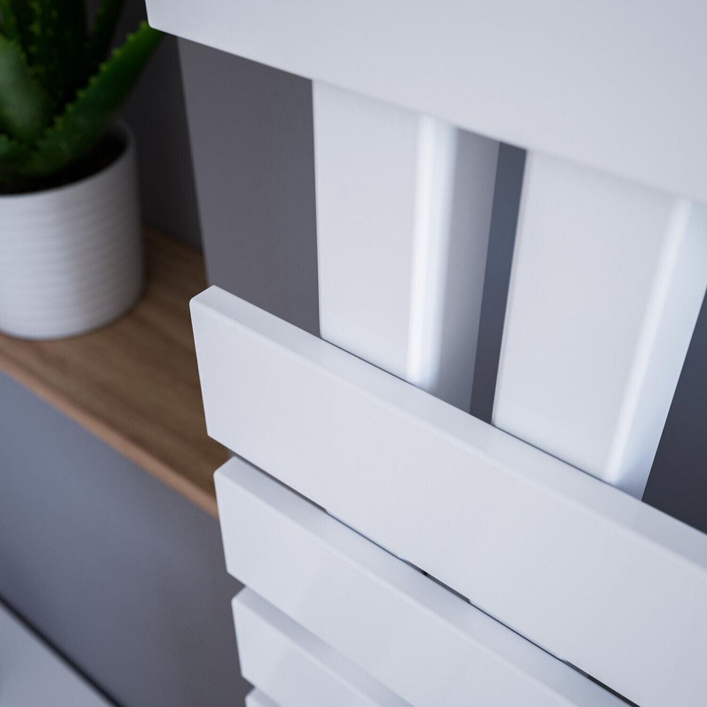 Der Heizkörper hat eine Breite von 600 mm, eine Höhe von 1.060 mm und eine Tiefe von 103 mm. Er ist ideal für unterschiedliche Raumgrößen und lässt sich leicht in Ihre bestehende Einrichtung integrieren.
