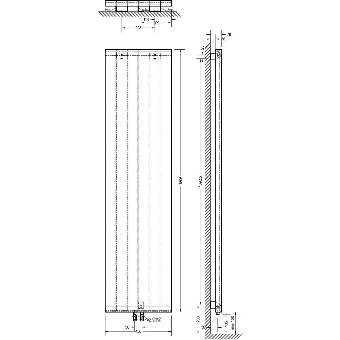Der Heizkörper arbeitet effizient mit einem Warmwasserbetrieb und ist mit einem Mittelanschluss ausgestattet, was die Installation zum Kinderspiel macht. Er erreicht eine maximale Temperatur von 110 °C und bietet mit einer Wärmeleistung von 805 Watt angenehme Wärme, auch an kalten Tagen.