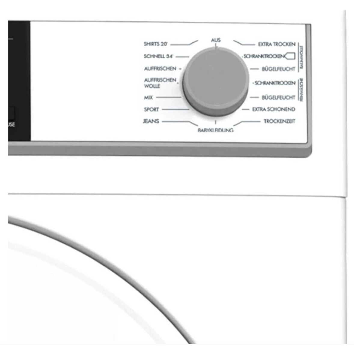 | Trockenprogramme: | Outdoor/Sport, Auffrischen, Jeans, Schranktrocken, Mischgewebe, Standardprogramme, Spezialprogramme, Kurz/Schnell, Babykleidung |