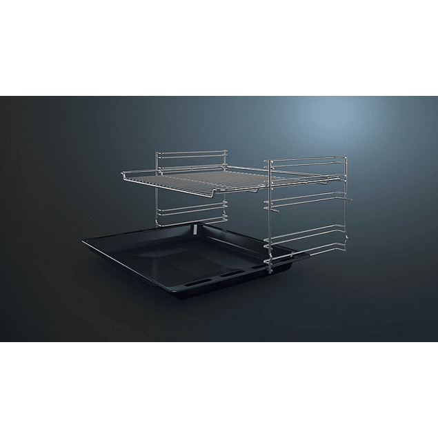 Darüber hinaus sorgen eine Vollglasinnentür, die geringe Türtemperatur und praktische Sicherheitseinrichtungen, wie das Kühlgebläse und die Kindersicherung, für ein sicheres Kocherlebnis. Im Lieferumfang enthalten sind eine Universalpfanne, ein Kombirost und ein Backblech.