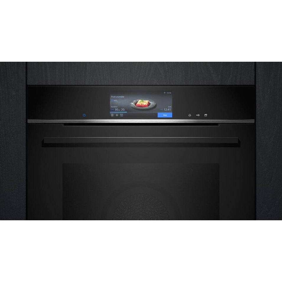 Entdecken Sie den Siemens HS758G3B1, einen hochmodernen Einbaubackofen aus der Serie Siemens IQ700, der in elegantem Schwarz gehalten ist. Mit einer Energieeffizienzklasse von A+ und einem beeindruckenden Innenraum-Volumen von 71 Litern ist er die ideale Wahl für große Küchen.
