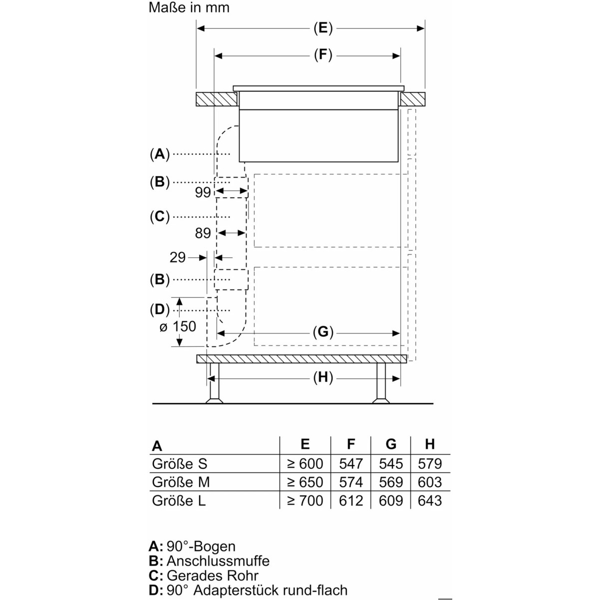 | Kochfeldabzug: | Abluft- oder Umluftbetrieb möglich |