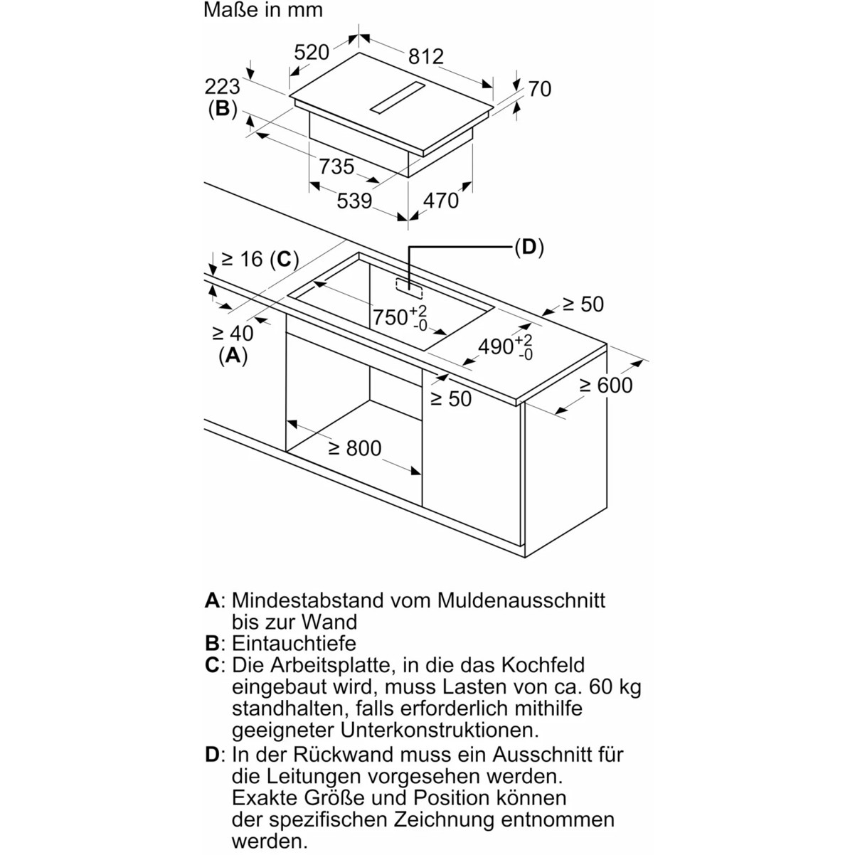 | Kochfeldtypen: | Kochfeld mit Dunstabzug, Induktionskochfeld |