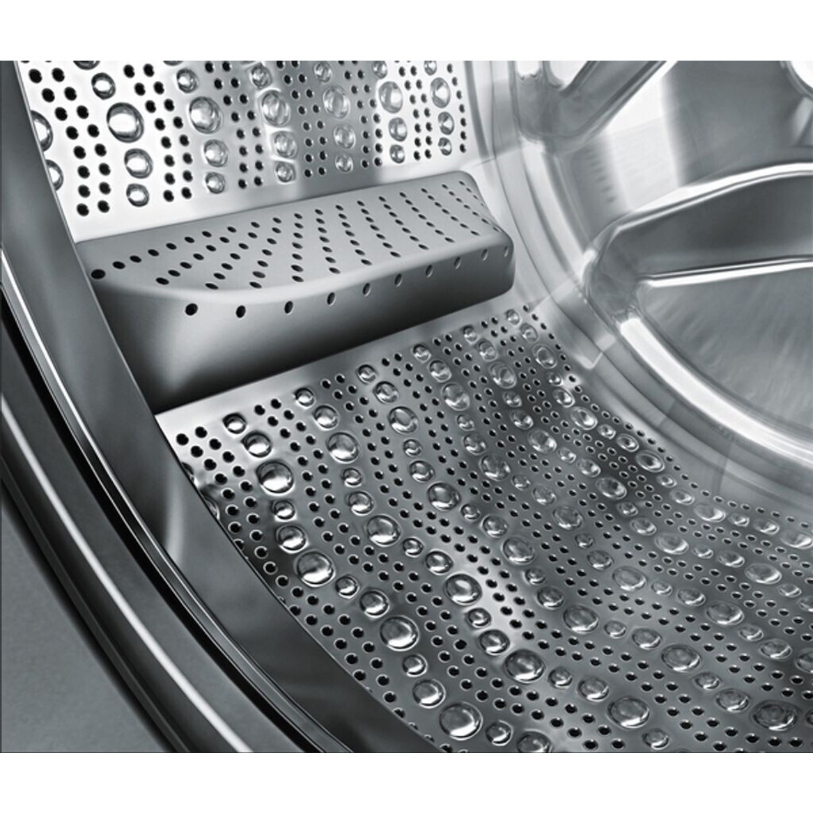 In einem eleganten weißen Design mit einem schwarzen Bullauge, fügt sich die Waschmaschine harmonisch in jede Haushaltsumgebung ein. Mit einer Höhe von 84,5 cm und einer Breite von 59,8 cm ist sie zudem freistehend und unterschiebbar ab einer Nischenhöhe von 85 cm.