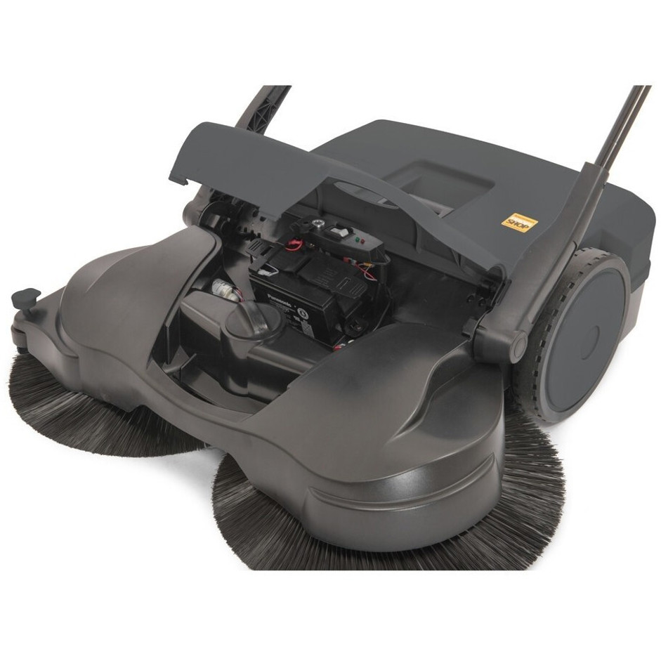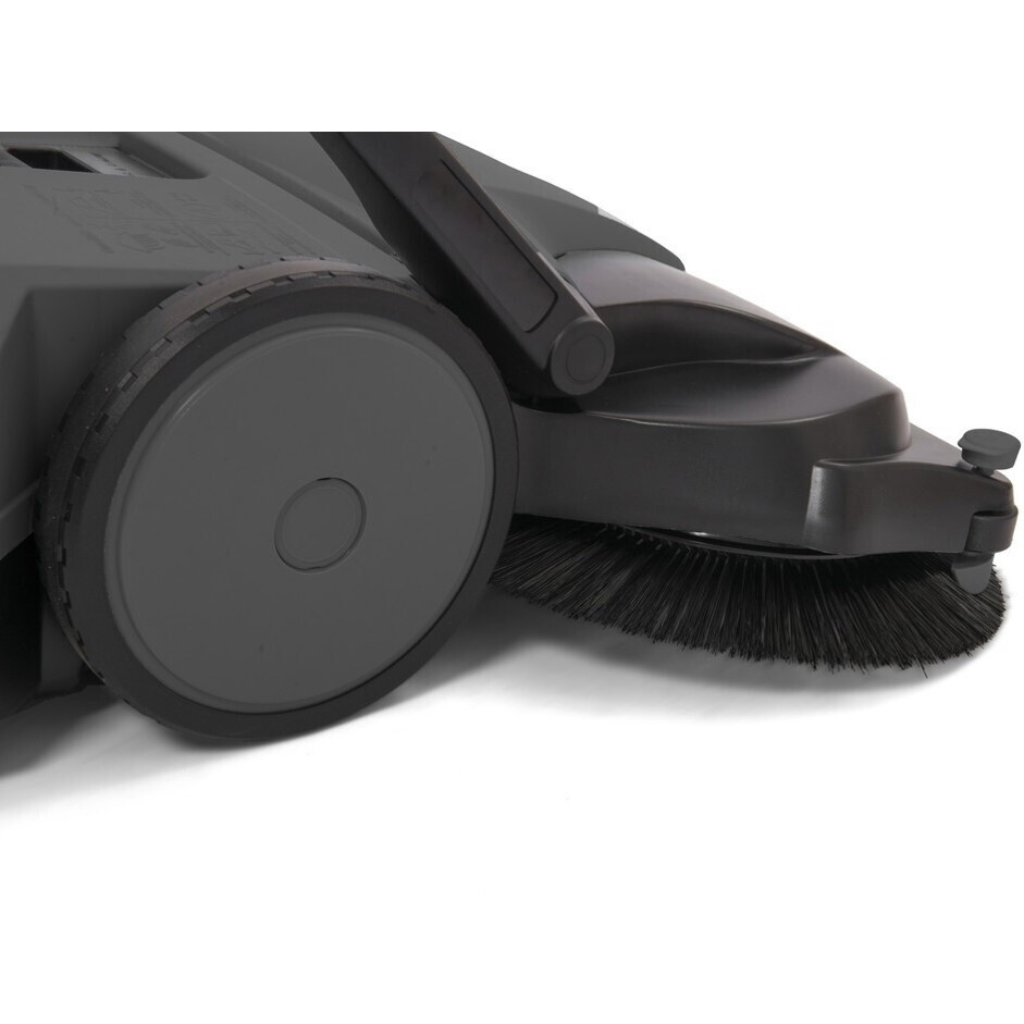 Obwohl die Maschine keinen Radantrieb hat, macht das manuelle und akkubetriebene System die Handkehrmaschine zum idealen Begleiter für verschiedene Anwendungen. Mit einem großzügigen Behältervolumen von 50 Litern müssen Sie weniger häufig entleeren und können sich auf das Kehren konzentrieren.
