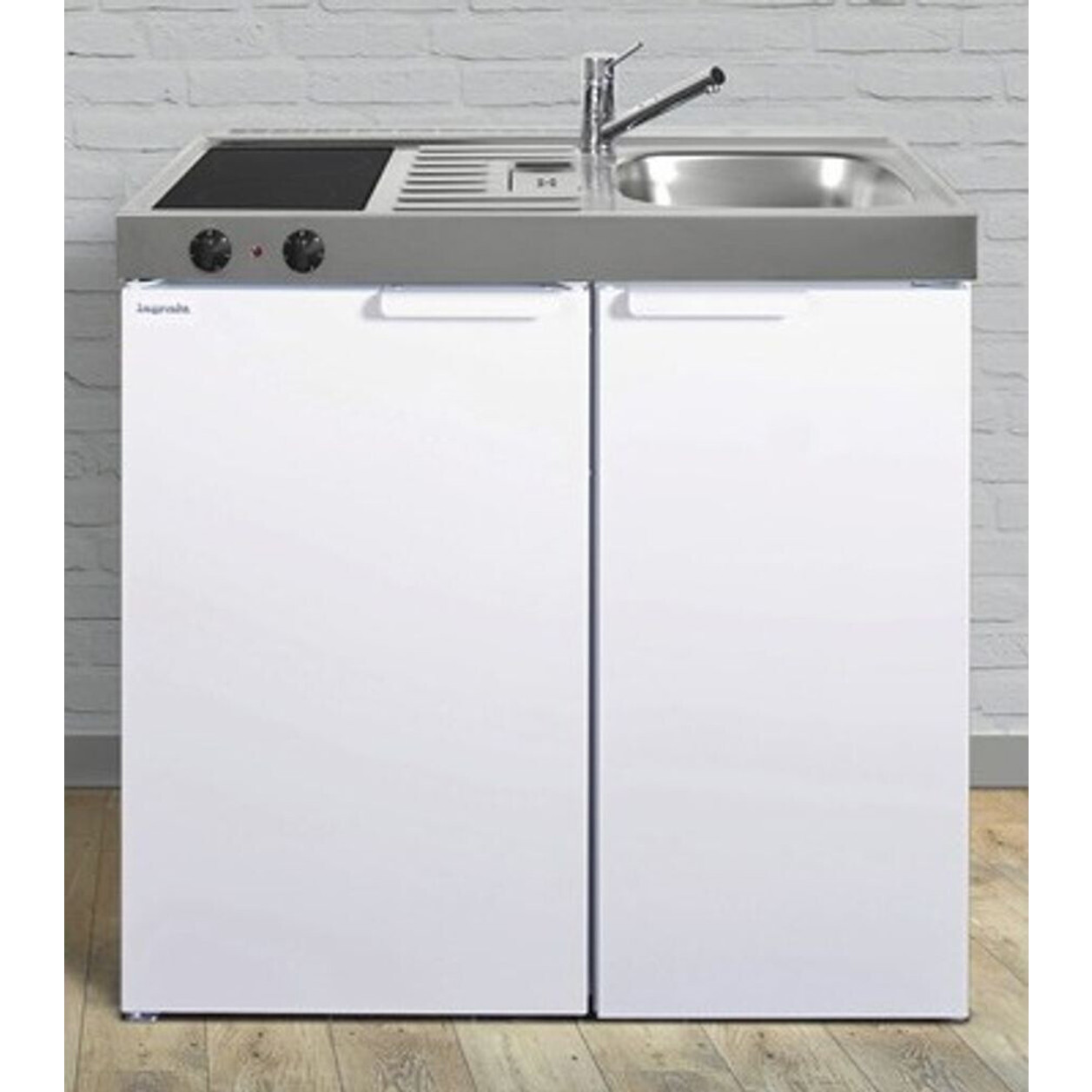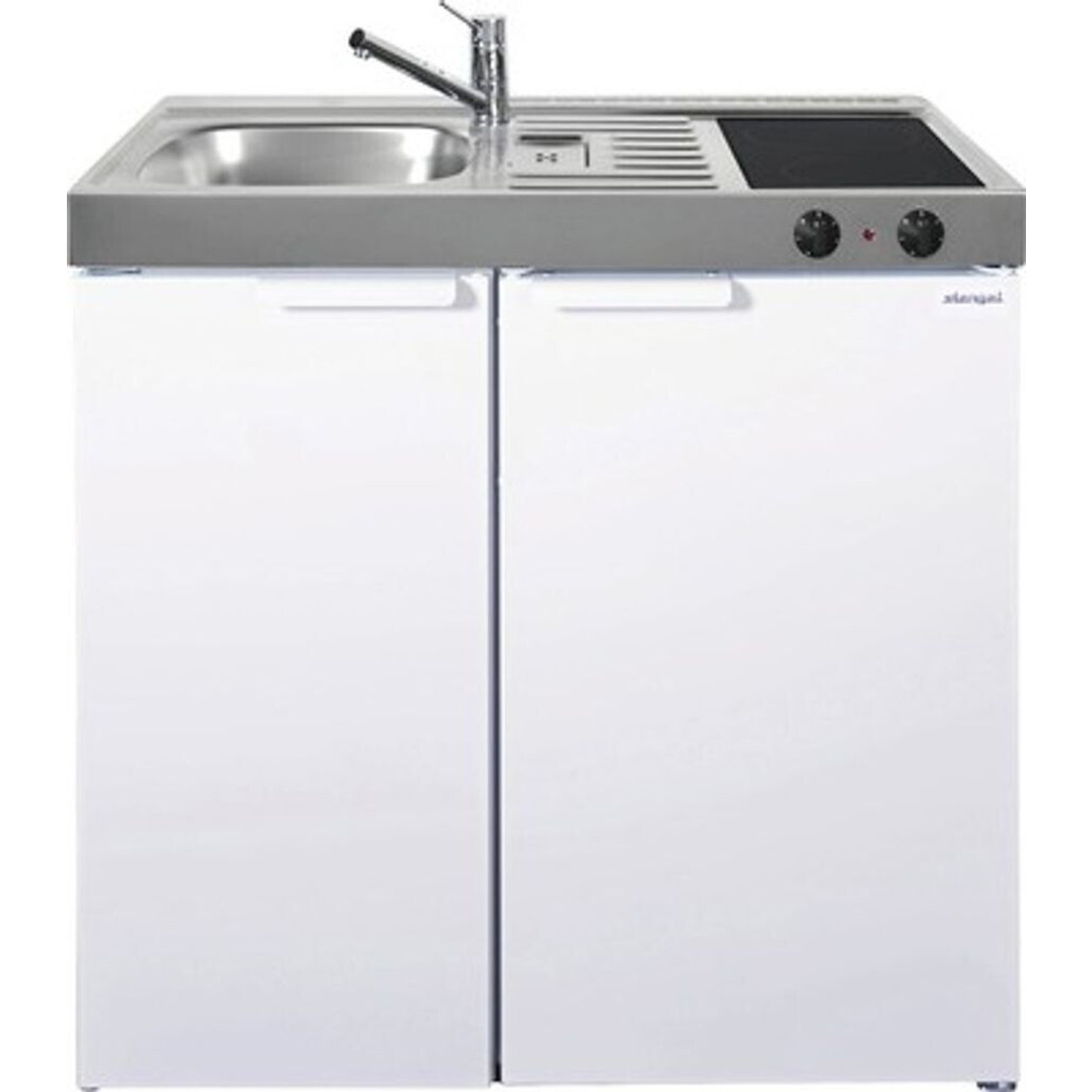 Entdecken Sie die vielseitige Stengel MKC 90 Glaskeramik Miniküche, die perfekt für kleine Räume und moderne Küchen layouts geeignet ist. Mit einer Höhe von 89,5 cm und einer Breite von 90 cm fügt sich diese kompakte Küche nahtlos in Ihr Zuhause ein und bietet dennoch großzügigen Stauraum.