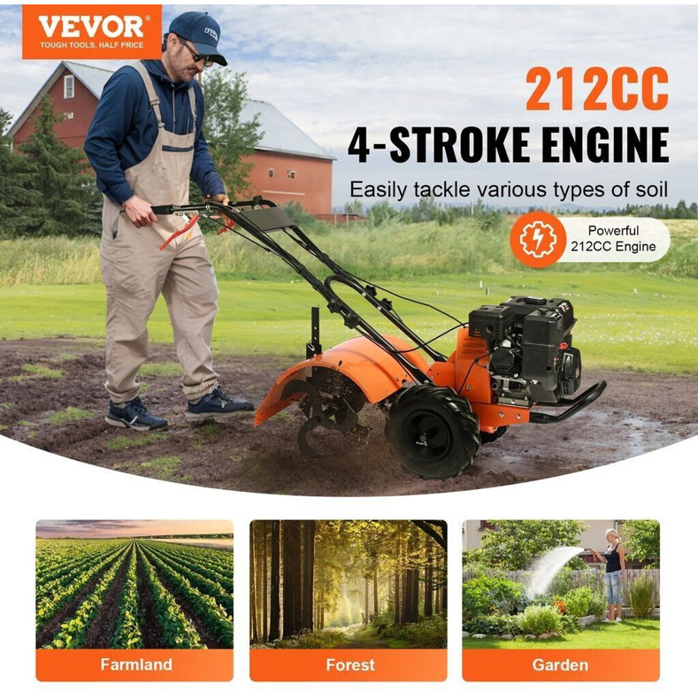 VEVOR 212CC Gartenfräse - Leistungsstarke Motorhacke für Effizientes Bearbeiten von Erde und Gartenboden