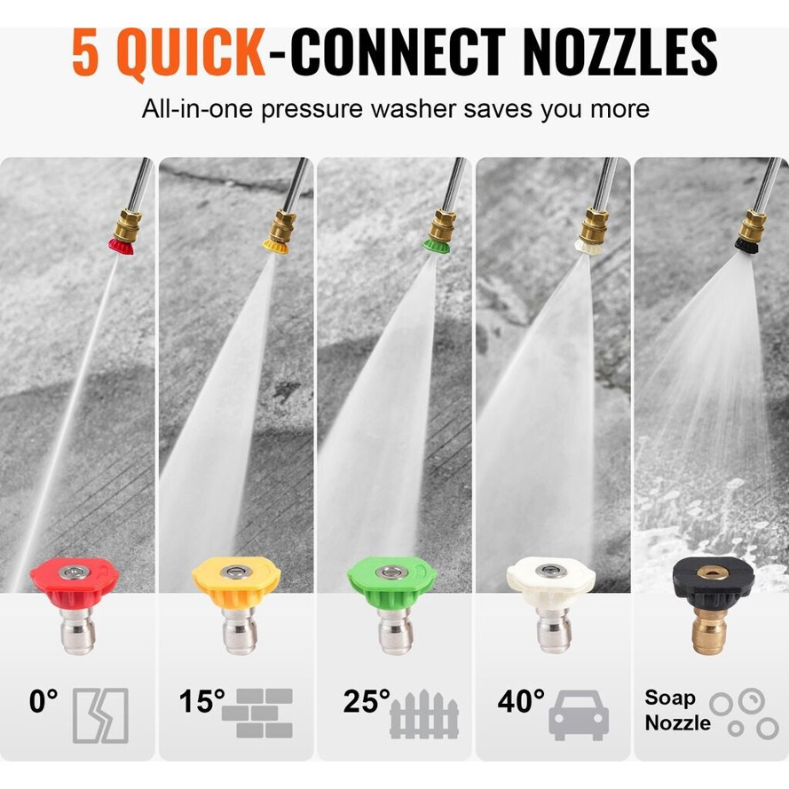 Entdecken Sie die beeindruckende Leistung des VEVOR Gas-Hochdruckreinigers, der mit 4400 PSI und einer Durchflussrate von 15 l/min (2,6 GPM) für unübertroffene Reinigungsergebnisse sorgt. Dieser hochmoderne Kaltwasser-Hochdruckreiniger ist nicht nur leistungsstark, sondern auch vielseitig einsetzbar und eignet sich ideal für eine Vielzahl von Reinigungsaufgaben.
