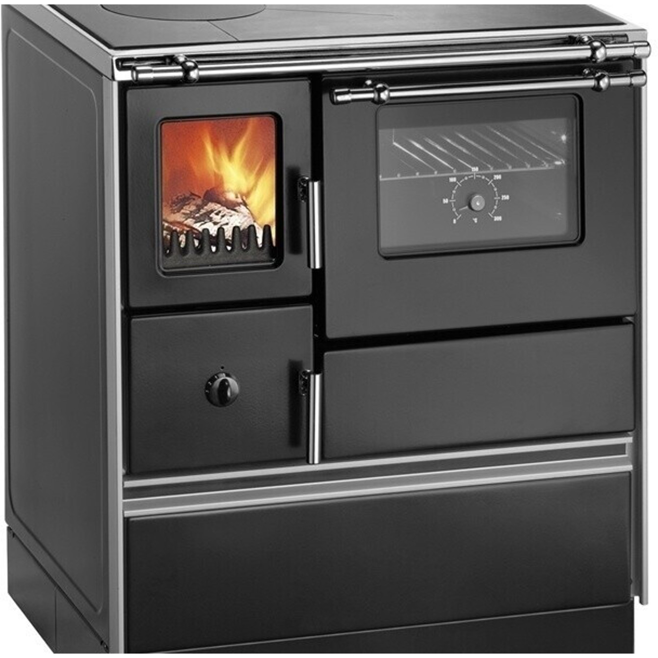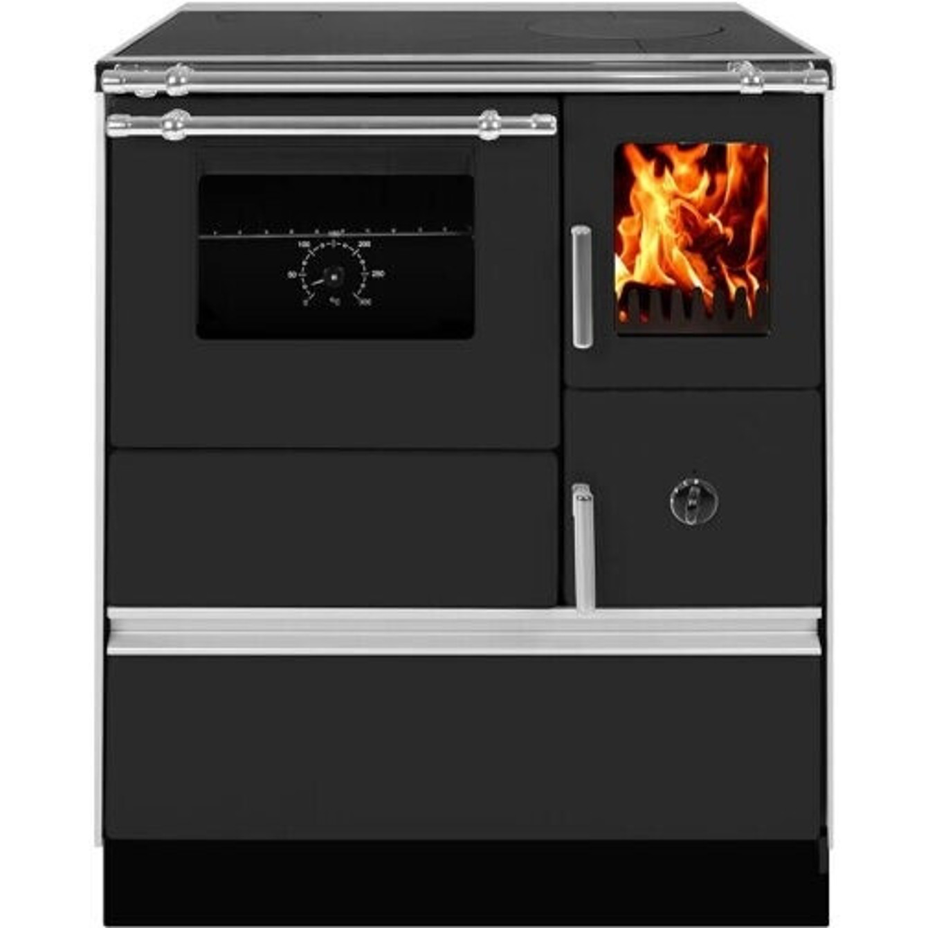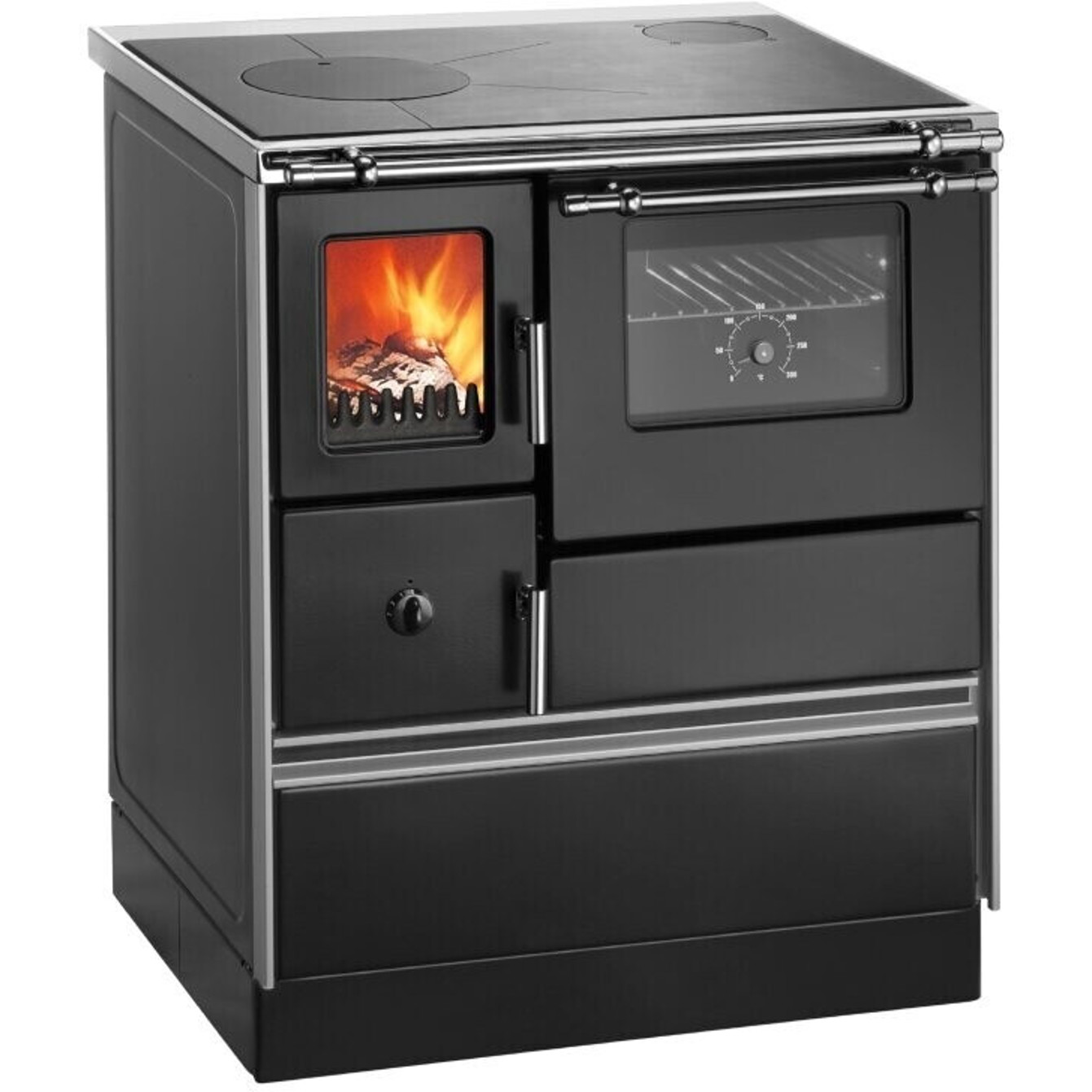 Die Fülltüröffnung von 14 x 17,5 cm führt zu einem geräumigen Feuerraum (17,5 x 39 cm) und einem Backofen mit den Maßen 33 x 26 x 44 cm, der Ihre Backkünste perfekt zur Geltung bringt. Hinzu kommen die vielseitigen Anschlussmöglichkeiten, die sowohl oben als auch links möglich sind.