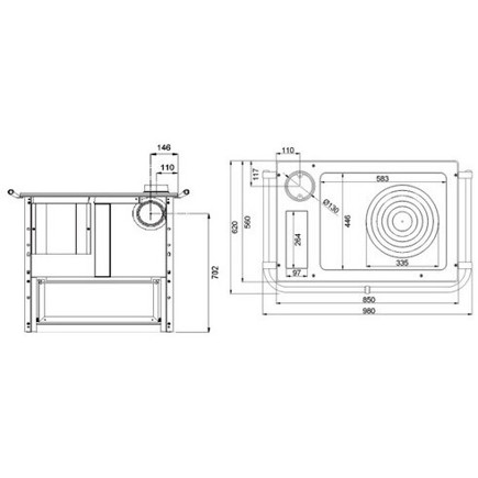 | Ausstattung: | Sichtfenster, Aschebehälter, Backofen, Rüttelrost, Backblech, Herdstange, Backrost, Schürhaken, Holz-/Kohlewagen, Thermometer, Warmhaltefach |