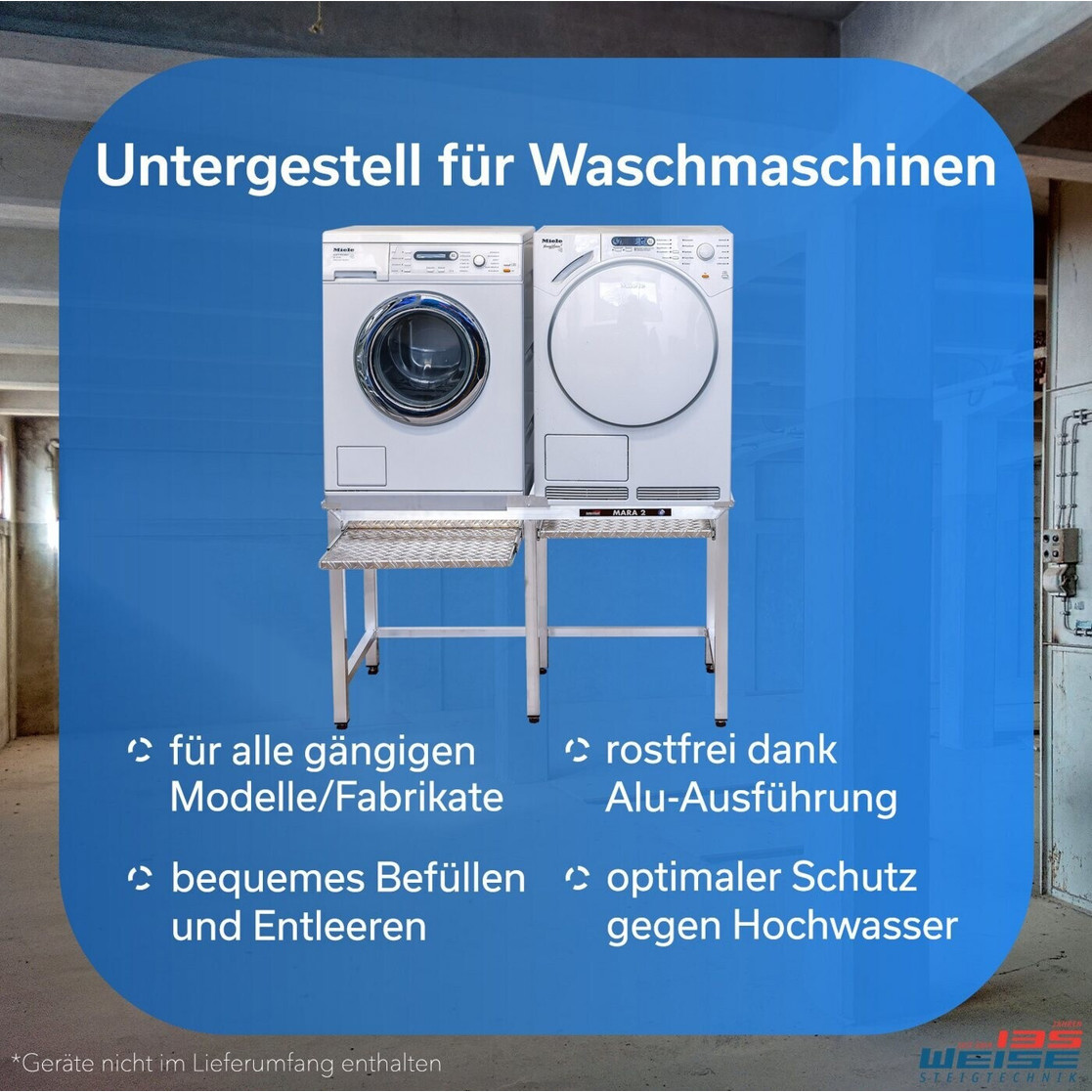Entdecken Sie das hochwertige Untergestell für Waschmaschinen, das speziell aus Aluminium gefertigt ist. Das Weise Mara Waschmaschinen 70 cm Untergestell bietet die perfekte Lösung, um Ihre Waschmaschine oder sogar Geschirrspüler, Kühlschrank und Gefrierschrank sicher und stabil zu platzieren. Es ist nicht nur robust, sondern auch besonders langlebig, was es zu einem unverzichtbaren Trockner-Ersatzteil macht.