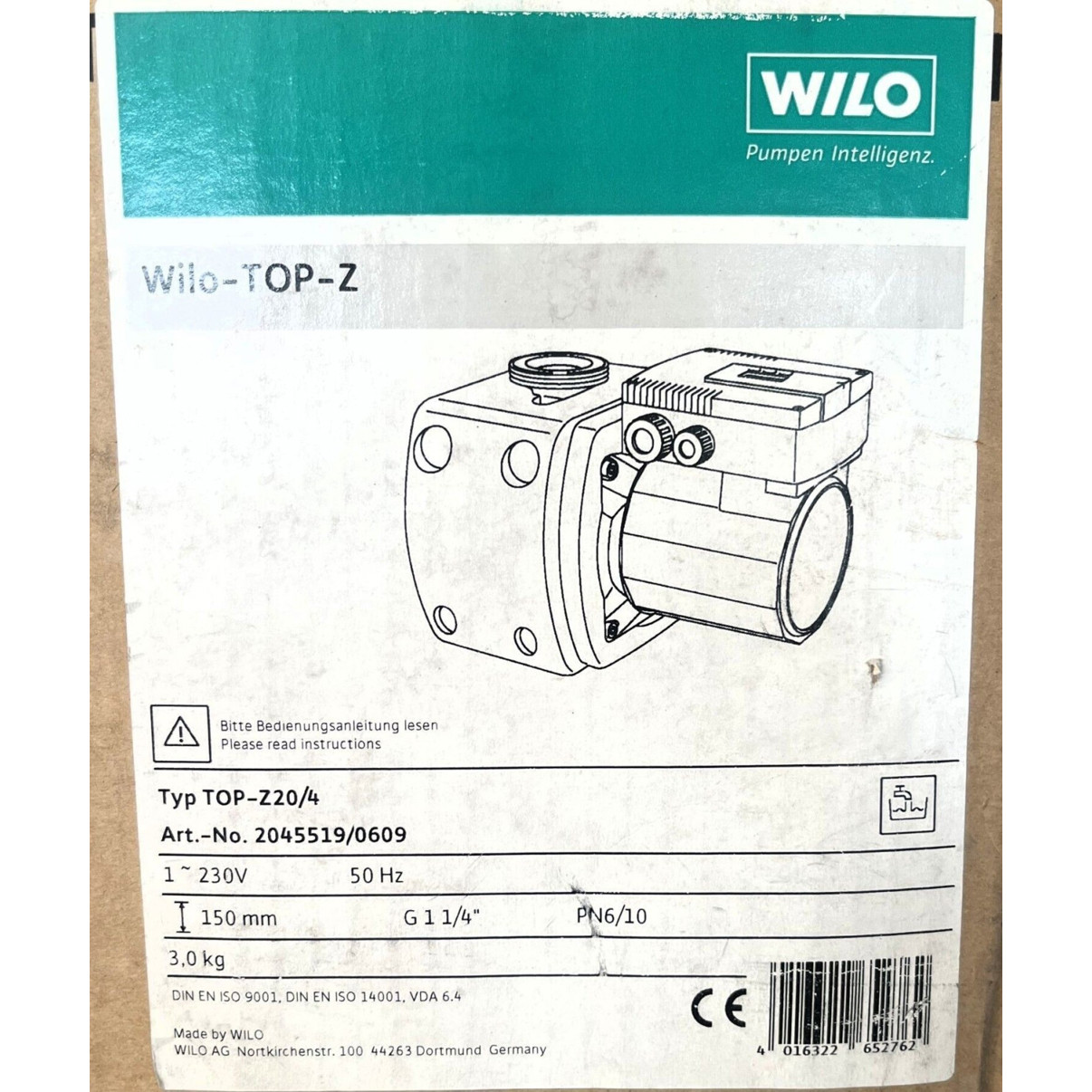 Wilo TOP Z 20/4 EM PN6/10 Heizungspumpe - 150mm