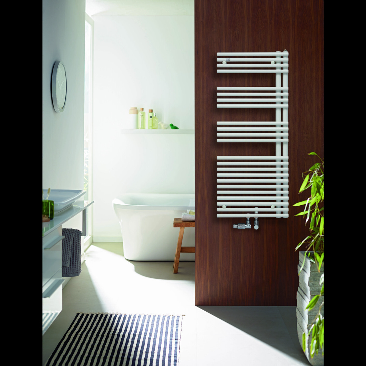 In einem stilvollen weißen Finish, fügt er sich harmonisch in Ihr Badezimmer ein und bringt Ruhe und Eleganz. Dieser Heizkörper ist mit einem Mittelanschluss ausgestattet, der die Installation erleichtert und es Ihnen ermöglicht, das Beste aus Ihrem Raum herauszuholen.