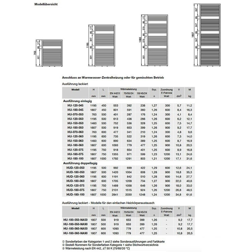 Entdecken Sie den Zehnder Universal HU, einen stilvollen Badheizkörper, der sowohl Funktionalität als auch zeitloses Design vereint. Mit seinen Abmessungen von 1.195 x 600 mm passt er perfekt in jedes Badezimmer, während die vertikale Ausrichtung zusätzlichen Platz spart.